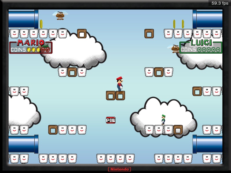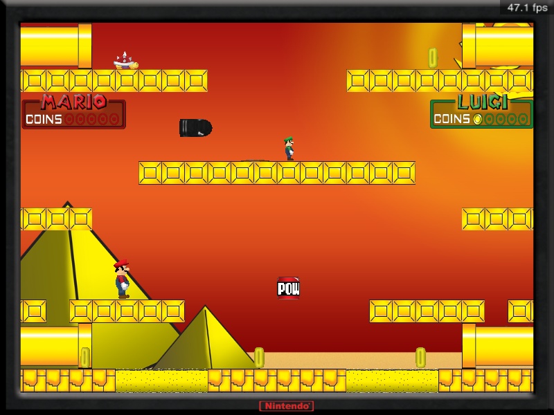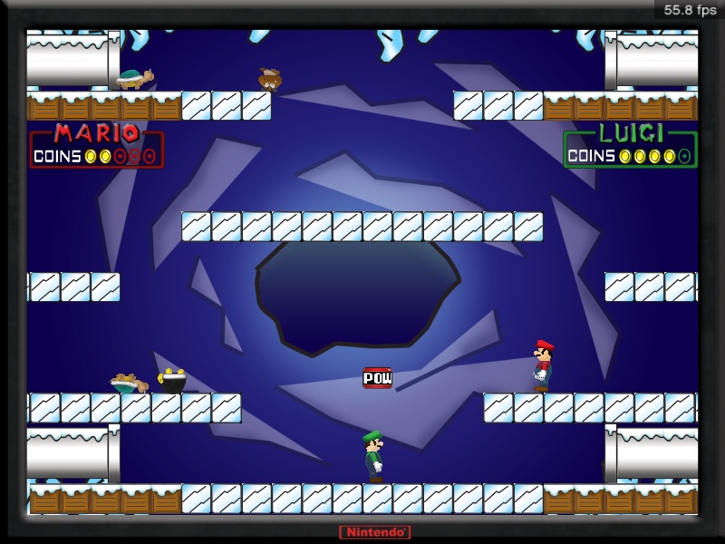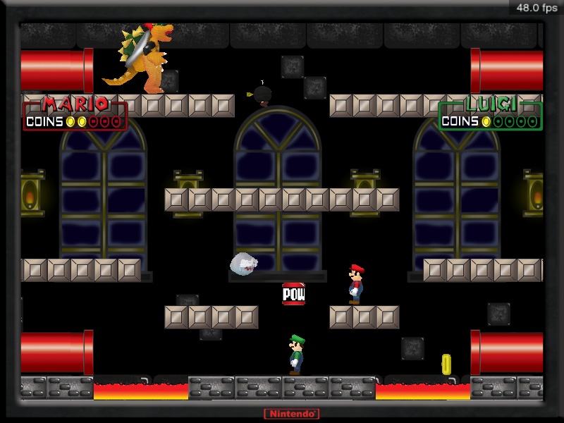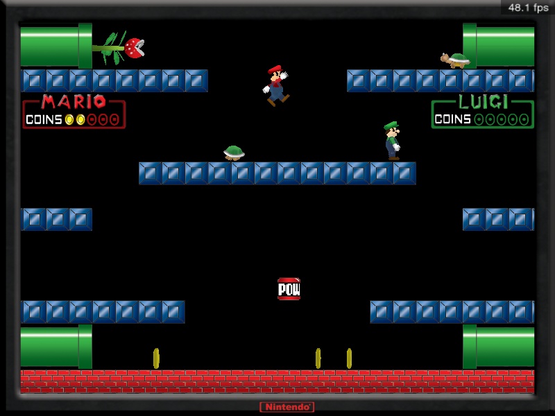 During the design week we tried tirelessly to come up with a unique cooperative experience, but it eventually became clear that if we were building giant controllers, and they would likely be Nintendo controllers, that we would have to use Nintendo's iconic character Mario in some way. After much more brainstorming, the decision was made to do a remake of the original Mario Bros battle game.